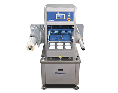 Semi-automatic, tray sealing machine with full vacuum facility or not. Capable of sealing up to 30 Vacuum/Gas trays per minute, with a 6 impression tool.